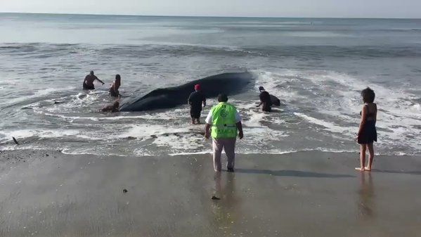 Por ahora se desconocen las causas del encallamiento en la playa de este magnífico cetáceo, el animal más grande que haya habitado alguna vez La Tierra.