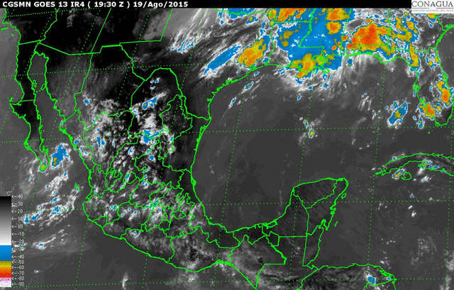 Ciudad de México, DF, México, 19 de agosto de 2015, México Ambiental.- De acuerdo con las previsiones, un canal de baja presión extendido sobre el noreste y oriente del México y el paso de un frente frío sobre la región fronteriza de Chihuahua y Coahuila, aunado al ingreso de humedad del Golfo de México, favorecerán el desarrollo de nubosidad y lluvias muy fuertes, de 50 a 75 milímetros (mm), acompañadas de descargas eléctricas y vientos fuertes en el centro y oriente de Puebla, informa el Servicio Meteorológico Nacional (SMN), dependiente de la Comisión Nacional del Agua (Conagua).